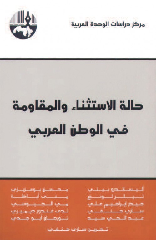 يُعنى كتاب حالة الاستثناء والمقاومة في الوطن العربي بدراسة أشكال الحاكمية، وخاصة في ما يتعلق بـ كيف يُحكم المواطن العربي، فهو لا يُحكم بالقانون، بل بحالة الاستثناء. وبالتالي يرصد الكتاب: كيف يتعامل المواطن العربي في ظل أوضاع يبدو فيها القانون الرسمي امتداداً لشرط الاستثناء. لقد تضمّنت بحوث القسم الأول بعض أشكال الحاكمية، عبر استكشاف الأُطُر المختلفة لحالة الاستثناء، والبيوبوليتيك، وعني القسم الثاني بكيفية مقاومة أفراد المجتمع العربي لتقنيات سلطة الدولة، عن طريق تنظيم أنفسهم من خلال منظمات المجتمع المدني، وعن طريق حركات الاحتجاج المختلفة. ويعالج الكتاب أسئلة محورية، منها: هل المجتمع المدني العربي قادر على المقاومة؟ وكيف يمكن أن تقاس قدرة المجتمع المدني على المقاومة بمدى استقلاليته وجماهيريته؟ كما يناقش الكتاب مفهوم اللاعنف في المقاومة باعتباره استراتيجية سياسية تتحدى آليات الهيمنة والسيطرة. وفي مقتضى السياق تمّت دراسة حركات الاحتجاج غير المسيّسة / حالة الانعطاف الجديد في الثقافة في مصر، وسوسيولوجية اللامبالاة: دراسة في التعبيرات الصامتة لدى الشباب التونسي، وديناميات الصمود في وجه التدمير الممنهج للمكان الفلسطيني. تسعة بحوث، في عمل فريقيّ، تؤسّس لفهم العلاقة، أو التقاطعات بين المستويات الثلاثة للسياسي: الحاكمية، والحكم، وحركات الاحتجاج اللامؤسساتية.