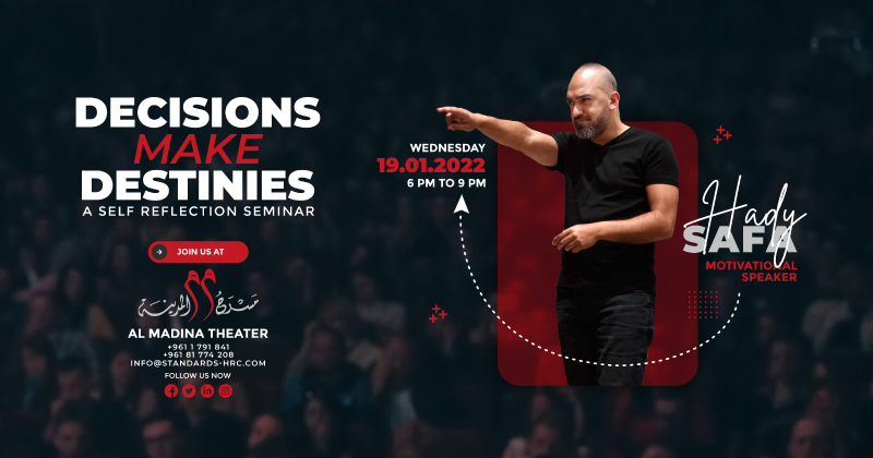 While Lebanon is enduring a severe economic depression, and sinking into one of the most severe crises amidst deliberate inaction and silence, Dr. Hady Safa, the Arab world’s renowned motivational speaker, takes us in his “Decisions Make Destinies” live seminar,...